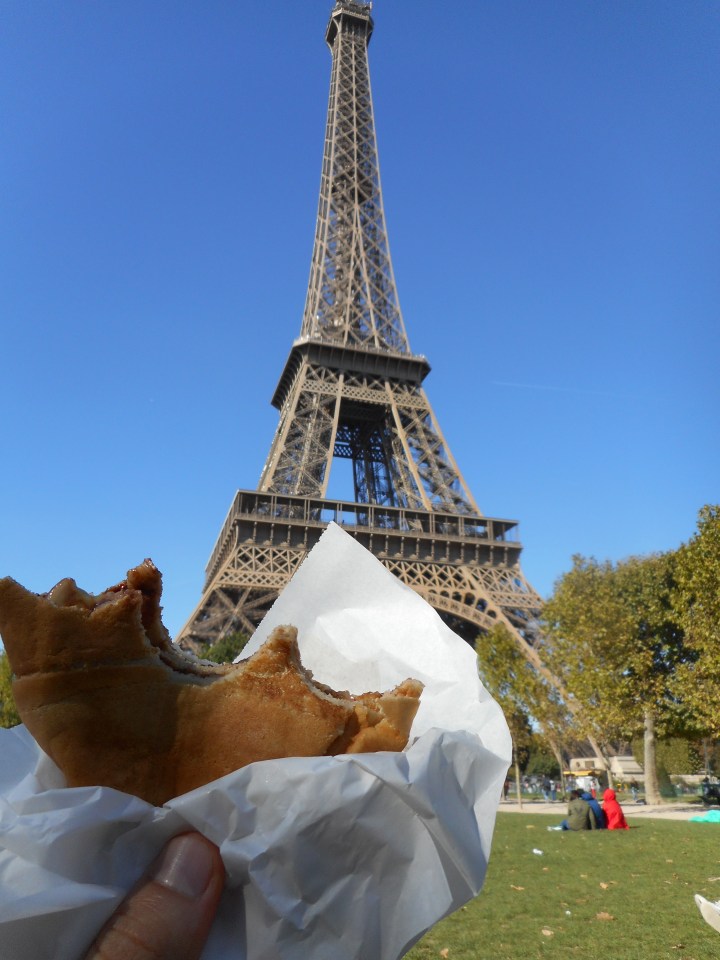 A Nutella and Banana crepe under the Eiffel Tower.