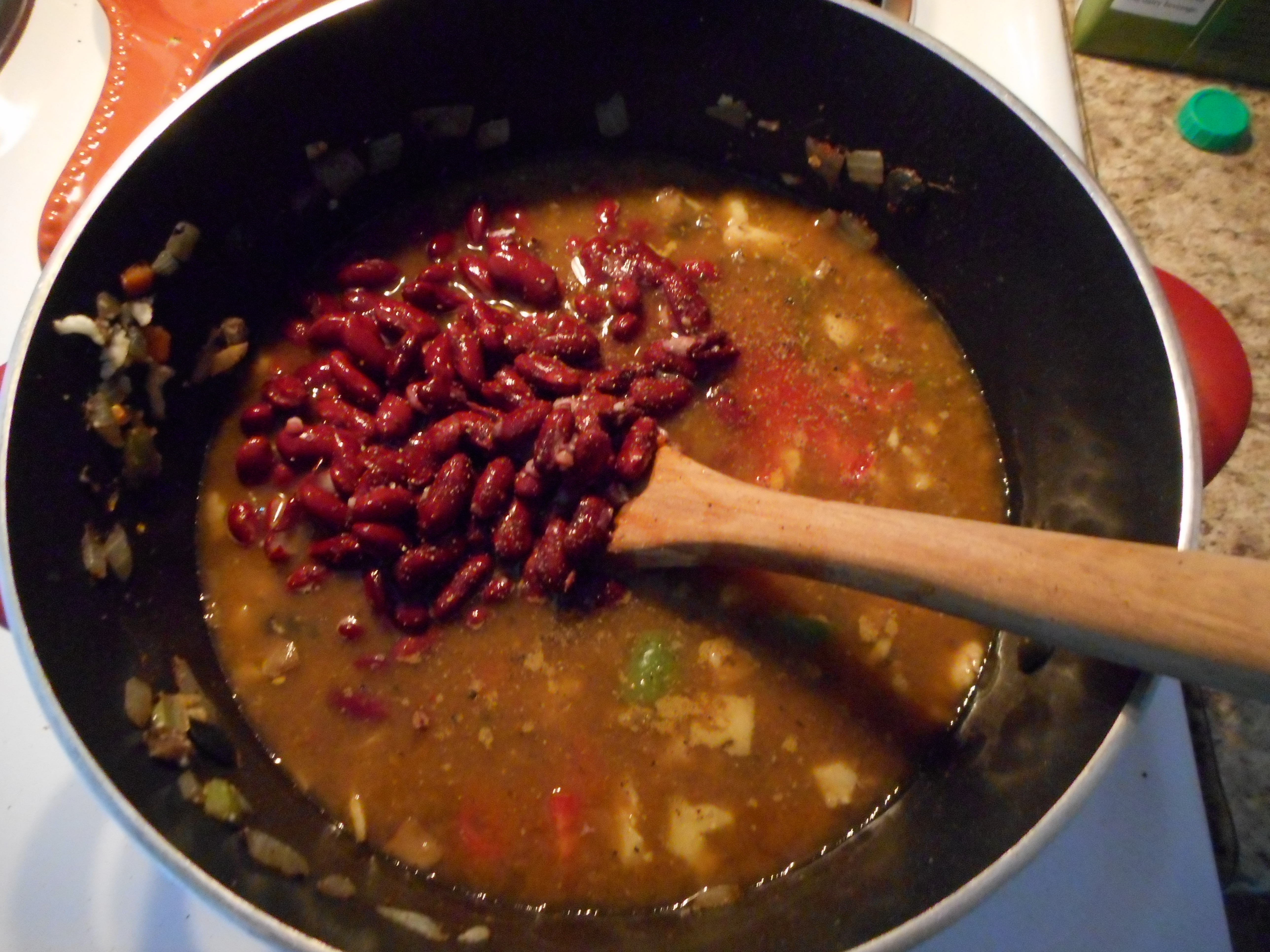 Add the beans, tomatoes, and vegetable stock, stir to combine…