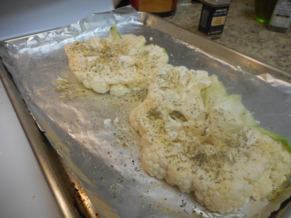 ← Previous Next → Cauliflower Steak Marsala 004 Drizzle with oil, season with the garlic powder, Herbs de Provence, and salt and pepper on both sides.