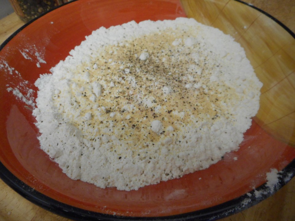 ← Previous Next → Chicken Bellagio 3 Make a seasoned flour with garlic powder, salt, and pepper in the flour.