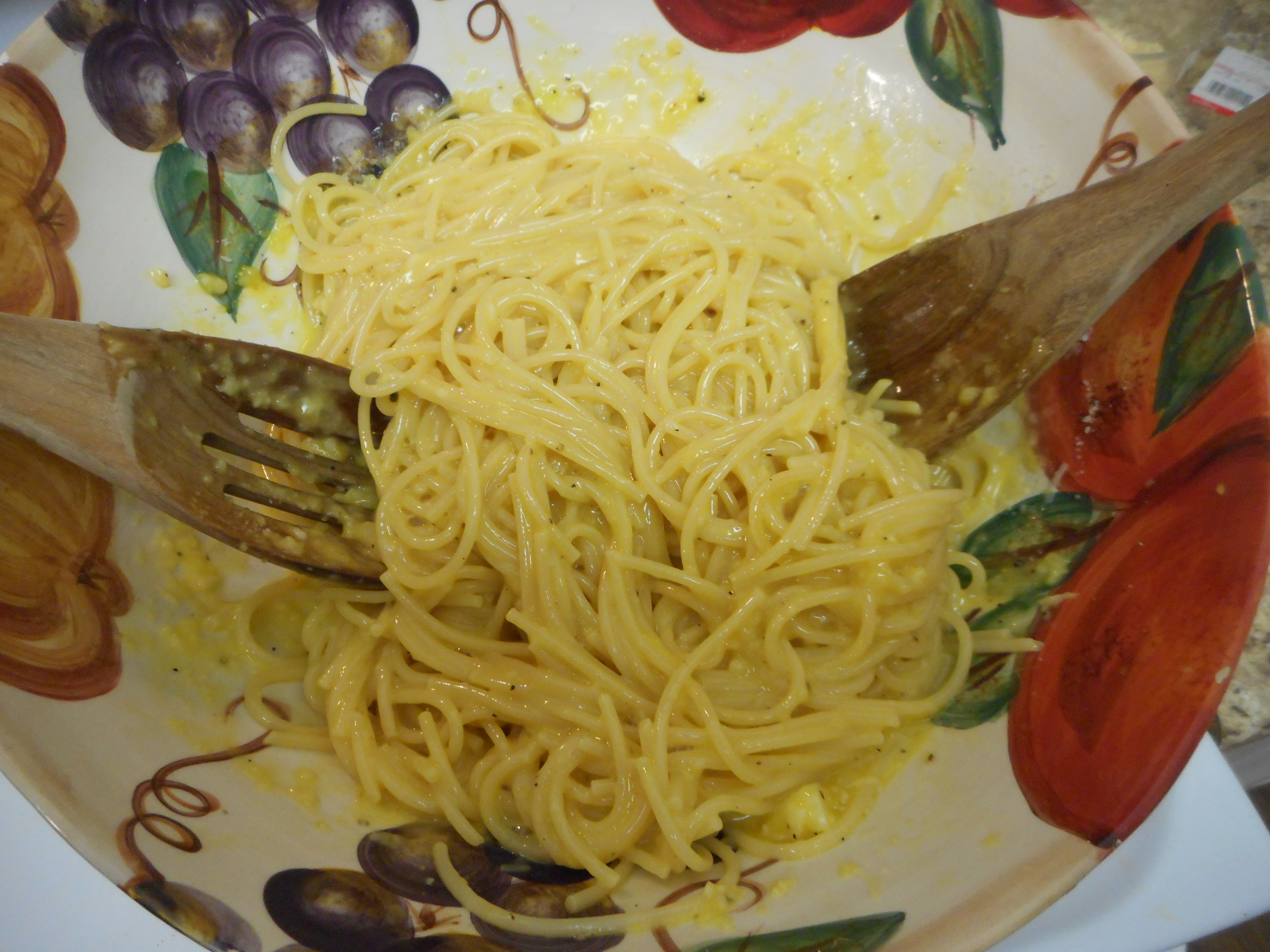 ← Previous Next → Carbonara 4 Cook the sauce over the pasta water, then add the pasta and more cheese. Mix until the noodles are coated and silky!