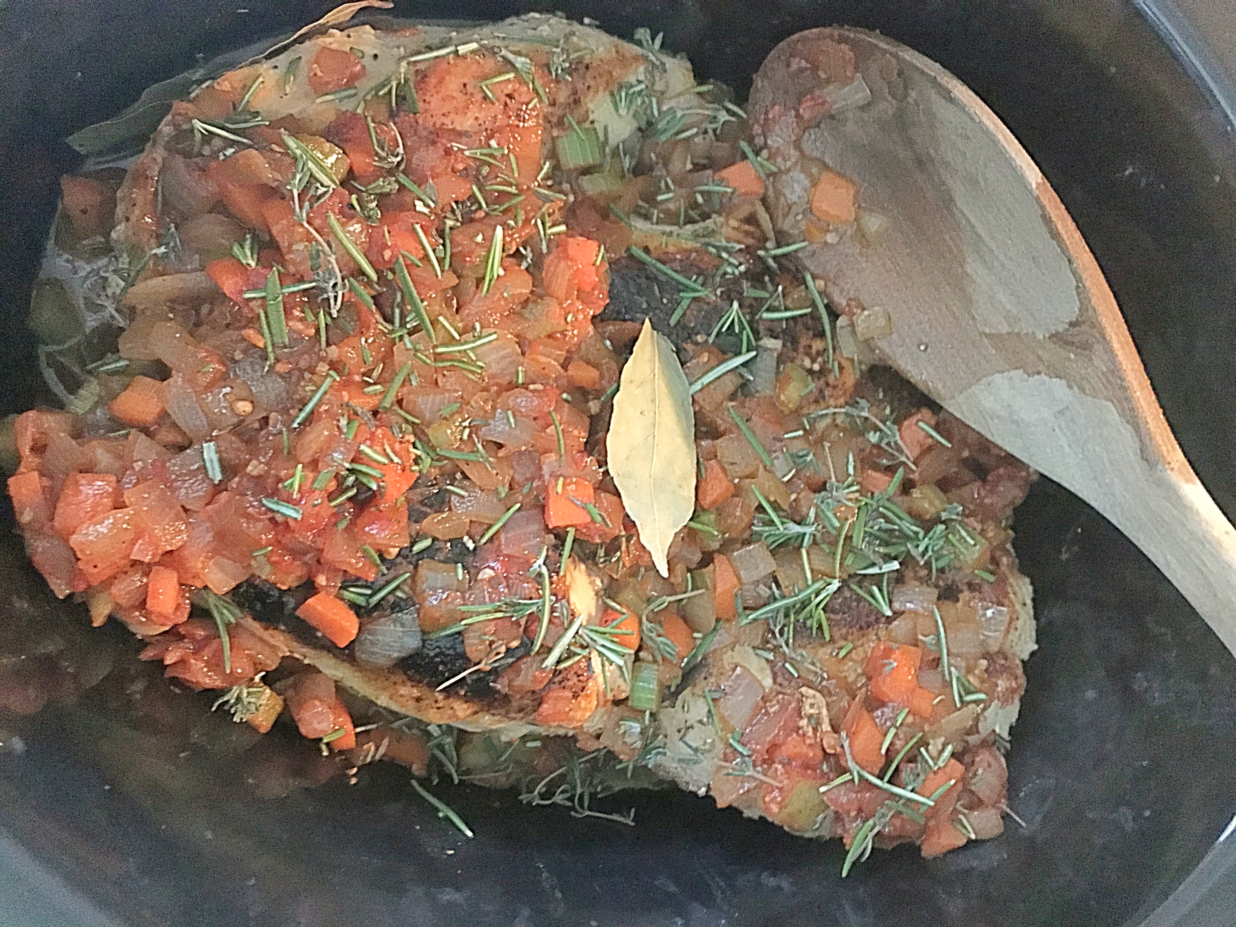 Add to the slow cooker with herbs, spices, and stock….
