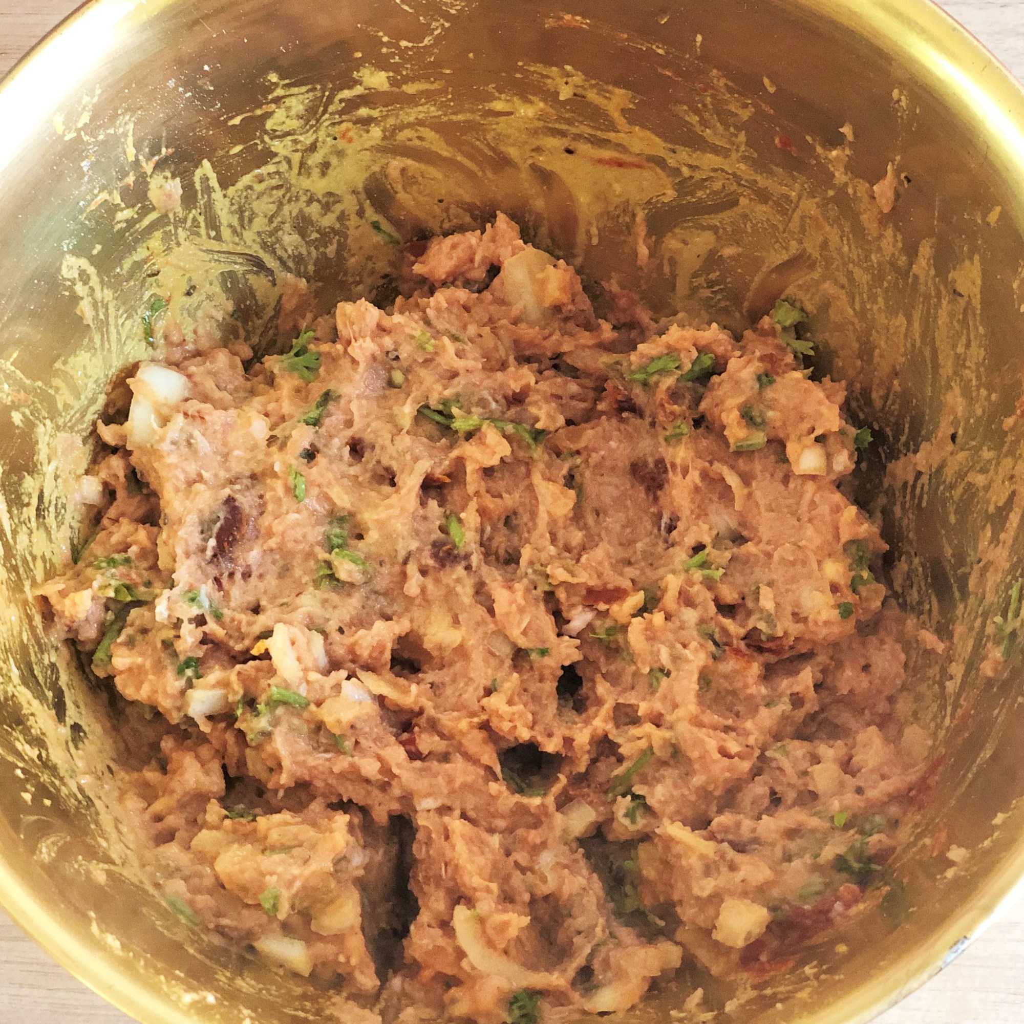 Tip: Fill up a large bowl with warm water and have nearby. In between rolling meatballs, dunk your hands in the water to avoid them getting sticky and causing difficulty making more balls.
