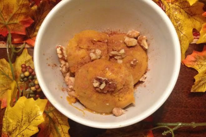 Defrost and serve into bowls, topping with additional pumpkin pie spice and nuts as desired. Enjoy!